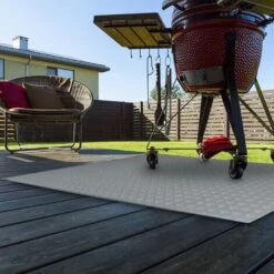Relaxdays Tappeto Per Barbecue, Tappetino Ignifugo, Protezione Pavimento Sotto Grill BBQ, Esterno, 150×100 Cm, Argento