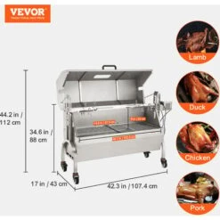 VEVOR Girarrosto Spiedo BBQ Con Coperchio 50W In Acciaio Inox Manuale/Elettrico Capienza Max. 60kg Altezza Regolabile 19-43,2cm, Kit Di Girarrosto Spiedo Per BBQ Festa Evento Esterno Lunghezza 117 Cm