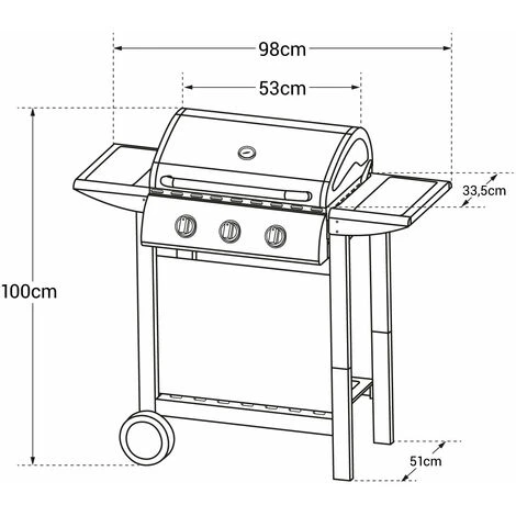 – Barbecue: L 100 x L 51 x H 98 cm