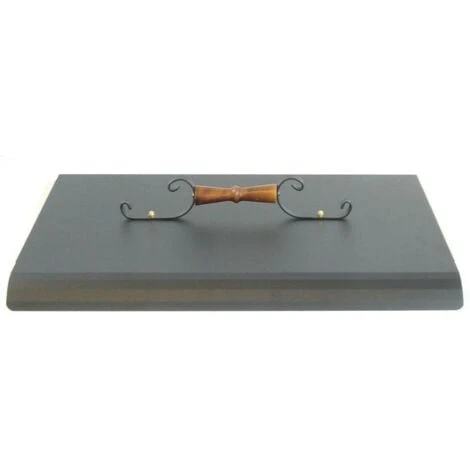 Coperchio per barbecue realizzato artigianalmente in ferro battuto e dotato di un decorativo manico in legno antiscottatura.