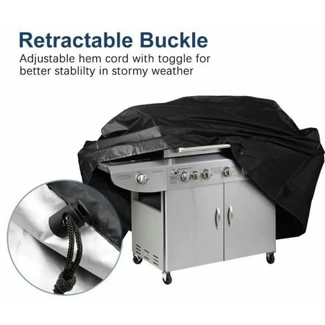 - 4. La housse protège votre gril de la pluie, de la poussière et du soleil. Même s’il y a du vent, la conception d’attache à œillets réglable intégrée peut bien assurer les fonctions de la housse.