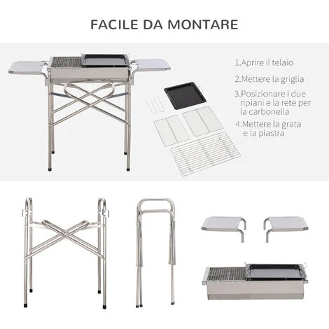Questo barbecue versatile è un compagno irrinunciabile in pic-nic o campeggio. Ideale anche per qualsiasi festa in giardino. Presenta una piastra per friggere e 2 piani d’appoggio laterali. Dispone di piccoli fori di ventilazione per dissipare il calore e assicurare il circolo dell’aria. Dalla forma stretta e compatta, occupa poco spazio nel trasporto. Questo barbecue da esterno è realizzato in acciaio inox di elevata qualità resistente alla ruggine, alla deformazione e alla corrosione.