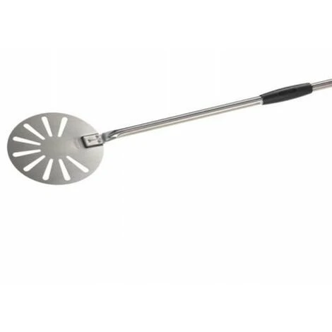 Palettino per pizza fatta in casa acciaio inox forato tondo D. 20 cm manico 120 cm Made in Italy, Qualità Professionale.Strumento indispensabile per girare la pizza nel forno ed estrarla quando e’ cotta.La particolare finitura forata alleggerisce la pala rendendola piu’ scorrevole e maneggevole.