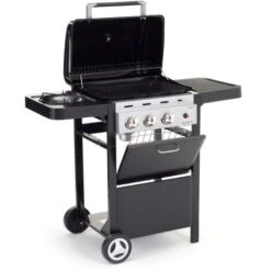 BARBEQUE A GAS 3 FUOCHI CON COPERCHIO E FORNELLO LATERALE