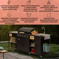 Klarstein Jersey – Cucina Da Esterno Con Griglia A Gas E Lavello, 20,7 KW, 5+1 Bruciatori, Mobile