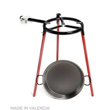 Set padella per paella lucida 38cm con treppiede e bruciatore a gas 300mm include padella per paella in acciaio lucido 38cm circa 8 porzioni altezza treppiede 60 cm. vaello